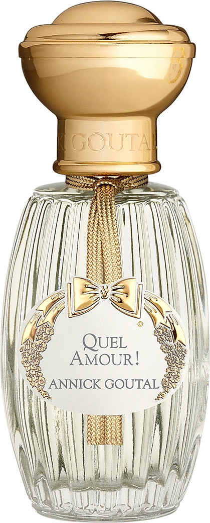 Annick Goutal аромат Quel Amour — этот парфюмерный шедевр создан дочерью Анник Гуталь-Каммилой.Обладательницы волшебного парфюма — Уверенная в себе женщина, полная надежд и мечтаний, любящая и любимая, достаточно застенчивая для того, чтобы ее щеки покрылись легким румянцем от комплиментов ее аромату. Парфюм подчеркивает женскую привлекательность и нежность. Основные ноты: пион, дикая роза, герань, роза, красная смородина, гранат, вишня, персик.
