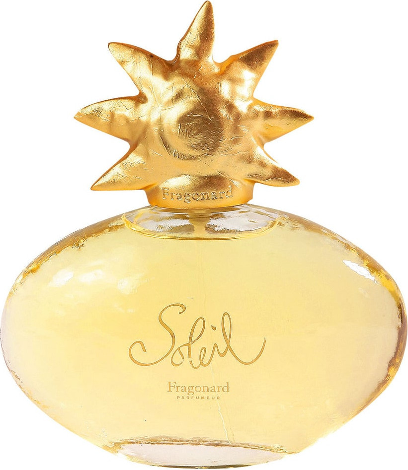Fragonard Soleil — аромат вышел в свет в 1997 году.Подходит женщинам любого возраста. Он обладает очень женственным, сладковатым ароматом, который подчеркнет такие качества своей обладательницы как мягкость, утонченность, гармоничность во всем. Теплый и спокойный, этот цветочный аромат долго не надоедает и отлично подходит для повседневной жизни. Весь день девушку, выбравшую Soleil от Fragonard, будет оберегать мягкий цветочный запах, а за собой она оставит теплый шлейф. Парфюмерная композиция Fragonard Soleil состоит из верхних нот черной смородины, глицинии, фрезии, жасмина, мимозы, флердоранжа и цвета гевеи. Ноты «сердца»: роза, сирень, белая лилия, корень ириса. Ноты шлейфа: амбра, мускус, сандаловое дерево.