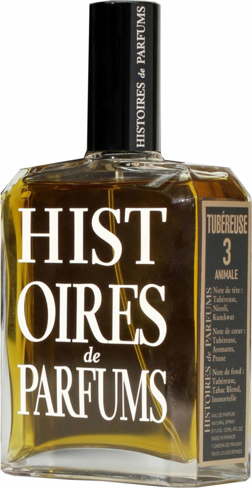 Histories de Parfums аромат Tubereuse 3 — воспевает истинный облик туберозы, цветка сладострастных желаний и наслаждений.Это- аромат искушения и соблазна, аромат чувственной, опьяняющей страсти. Он околдовывает и дурманит, подобно приворотному зелью… Верхние ноты: тубероза, бергамот, мандарин, нероли, кумкват. Ноты «сердца»: тубероза, жасмин, сухие ароматные травы, слива. Базовые ноты: тубероза, белая древесина, бессмертник, оттенки табака, сено