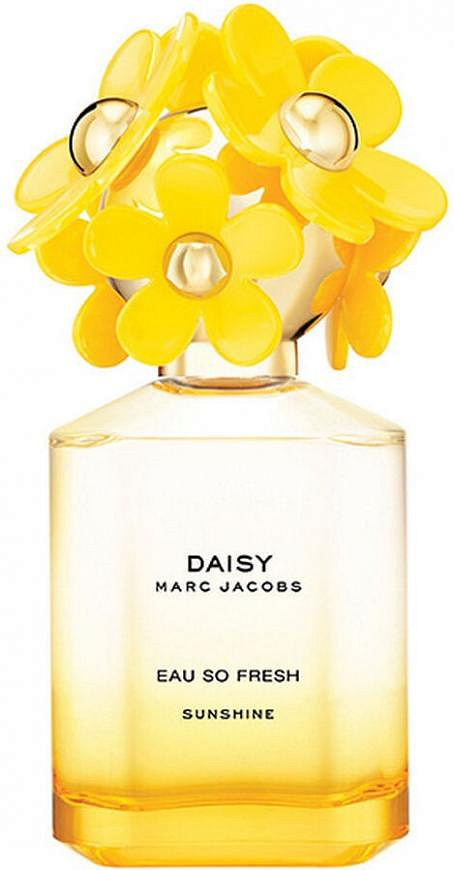 Marс Jacobs Daisy Eau So Fresh Sunshine — Туалетная вода выражена более смелым сочетанием фруктовых нот, по сравнению с самым первым ароматом который был создан в 2011 году.Верхние ноты включают аромат земляники, яблони и розового грейпфрута. Цветочные и мягкие ноты сердца составлены из нот жасмина, розы и листьев фиалки. Конечные ноты включают аромат дубового мха, амбры и древесных нот.