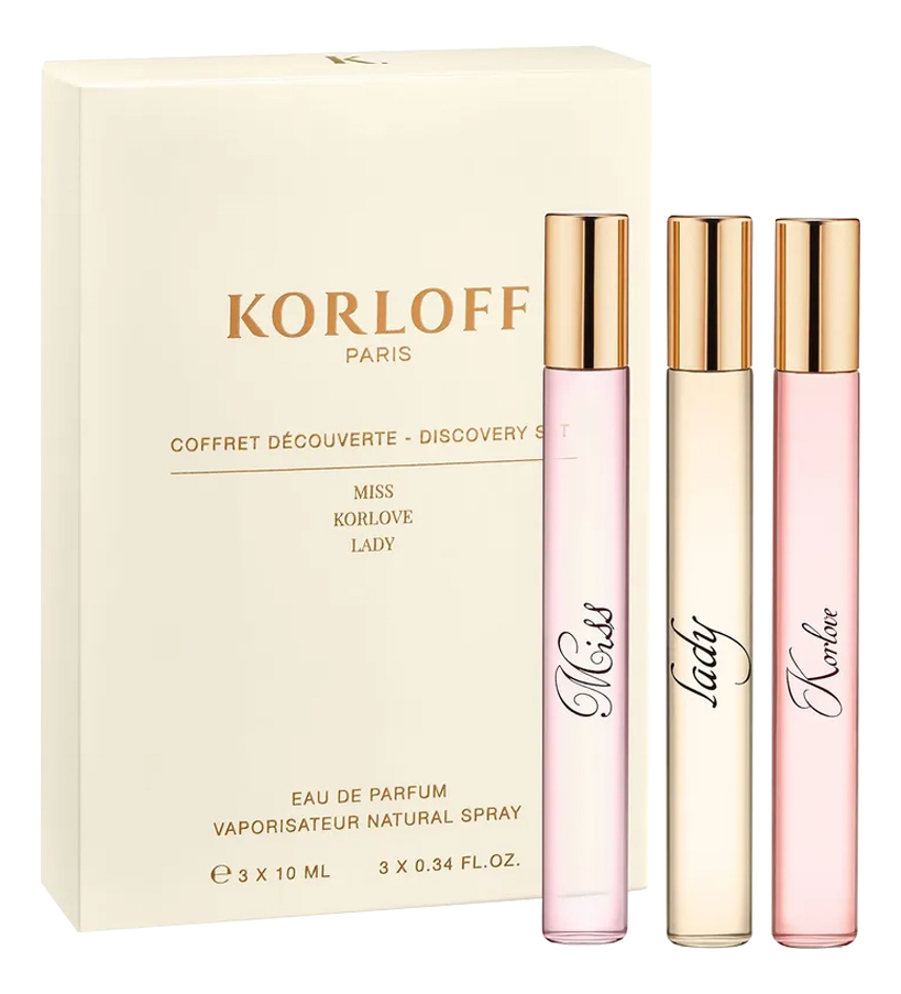 Korloff Paris Set Miss — это коллекция из трех пробников женских ароматов французского бренда Korloff Paris.Korloff Paris Lady — красочный, сочный и бесконечно привлекательный цветочный аромат. Парфюм привлекает своей непосредственностью, он выраз...